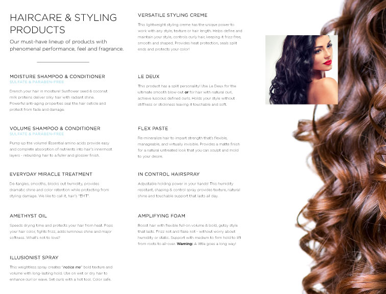 Thoroughly researched and clinically tested, our exclusive Biomineral Technology uses natural mineral sources + botanical protein catalysts to deliver what’s most important to your clients: Healthy manageable hair that is smooth, soft and strong, shines, and holds its color. Each of Medusa Salons private label hair care products contain a precise dosage of minerals and protein catalysts uniquely designed to achieve results you can see and feel. Of course, our all natural shampoos and conditioners are sulfate, sodium chloride, paraben and gluten free.